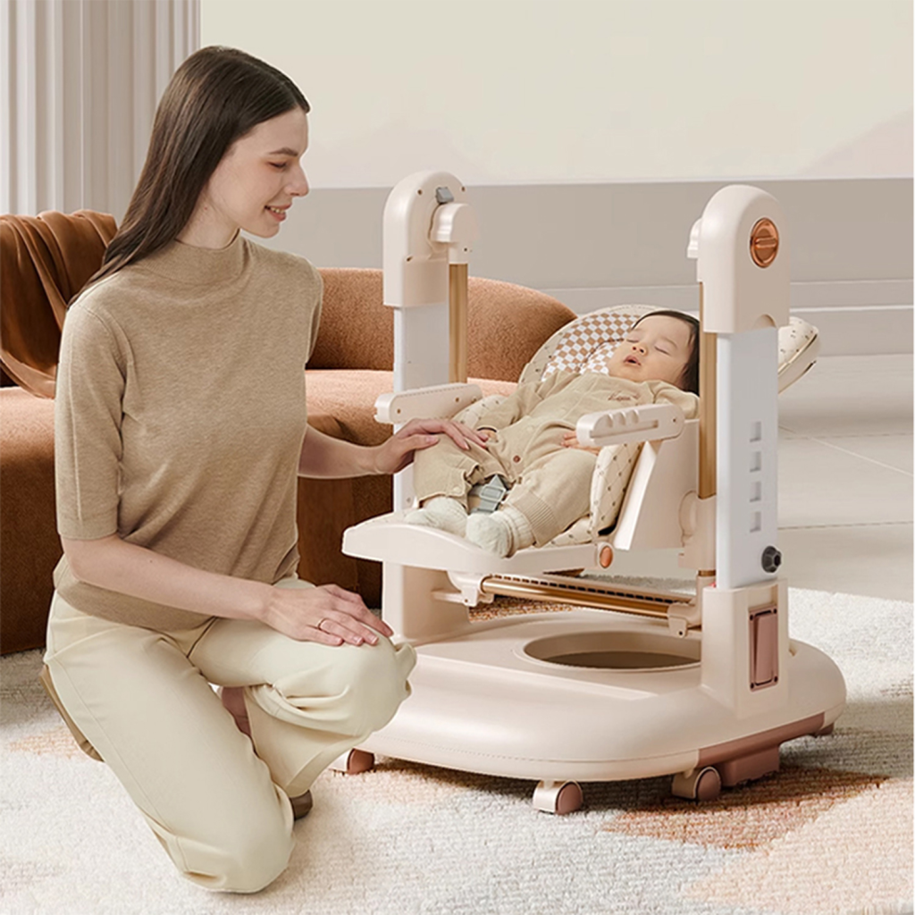 طراحی 3در1 - به عنوان صندلی غذای کودک، روروئک و گهواره برای استفاده روزانه و چندمنظوره عمل میکند.